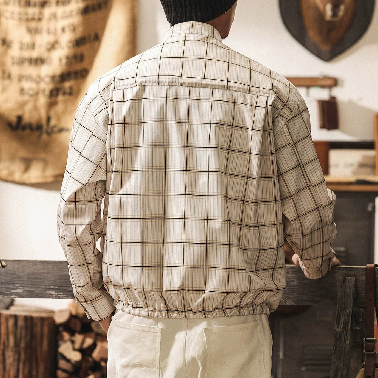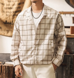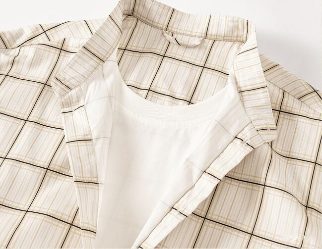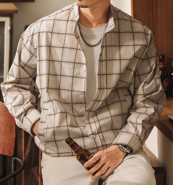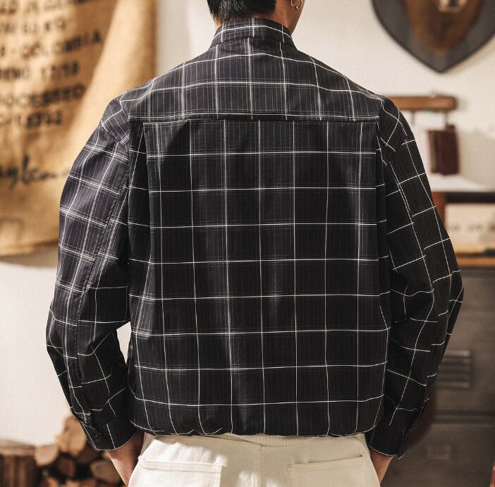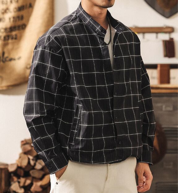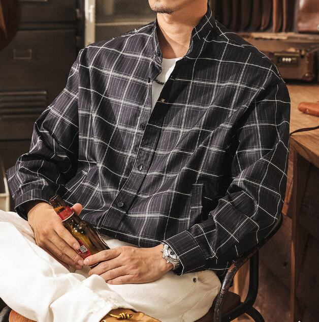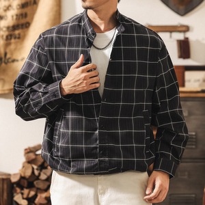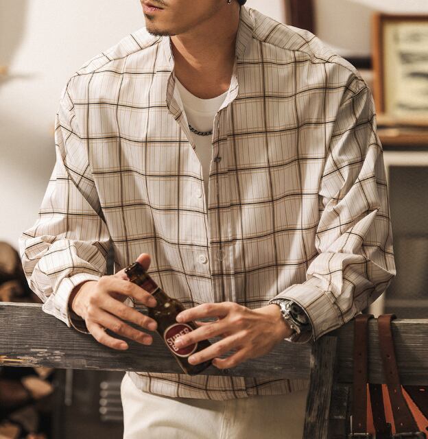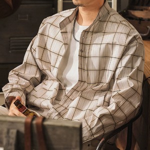 Stand collar two piece vintage check shirt ( 2color )