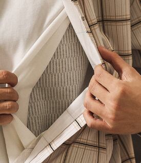 その際は大変お手数ではございますが、ご着用の前にハンガー等のケアをお試し頂きます様お願い申し上げます。