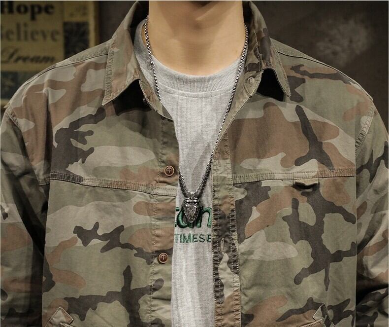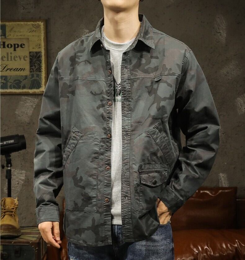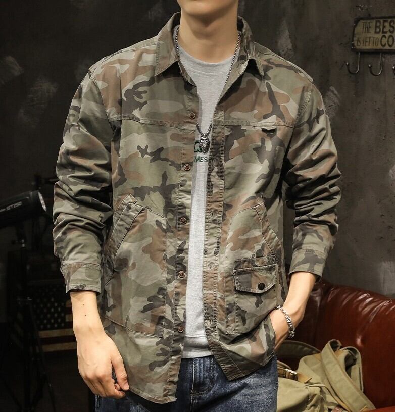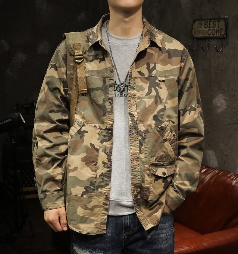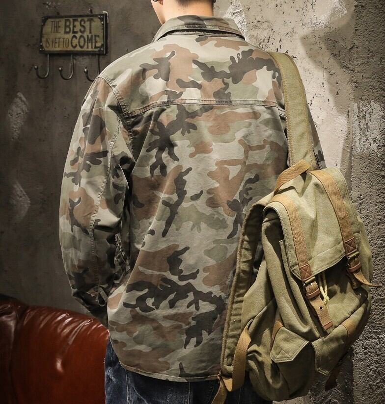 Side pocket retro camouflage shirt ( 3color )