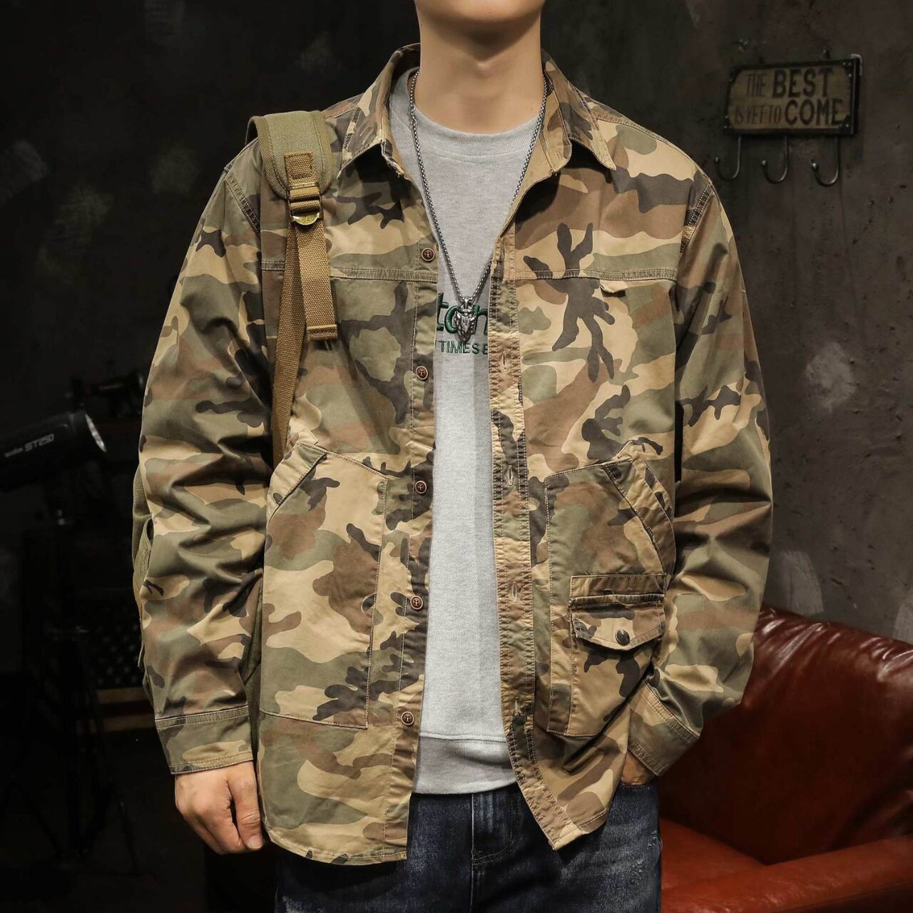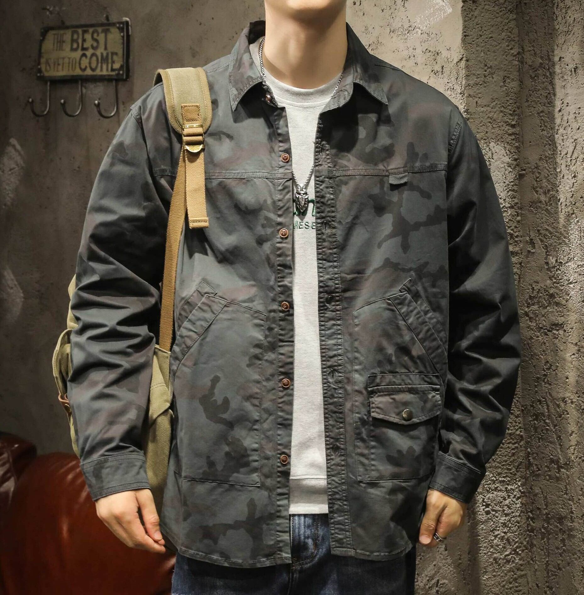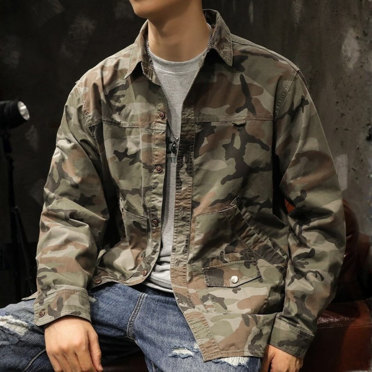 Side pocket retro camouflage shirt ( 3color )