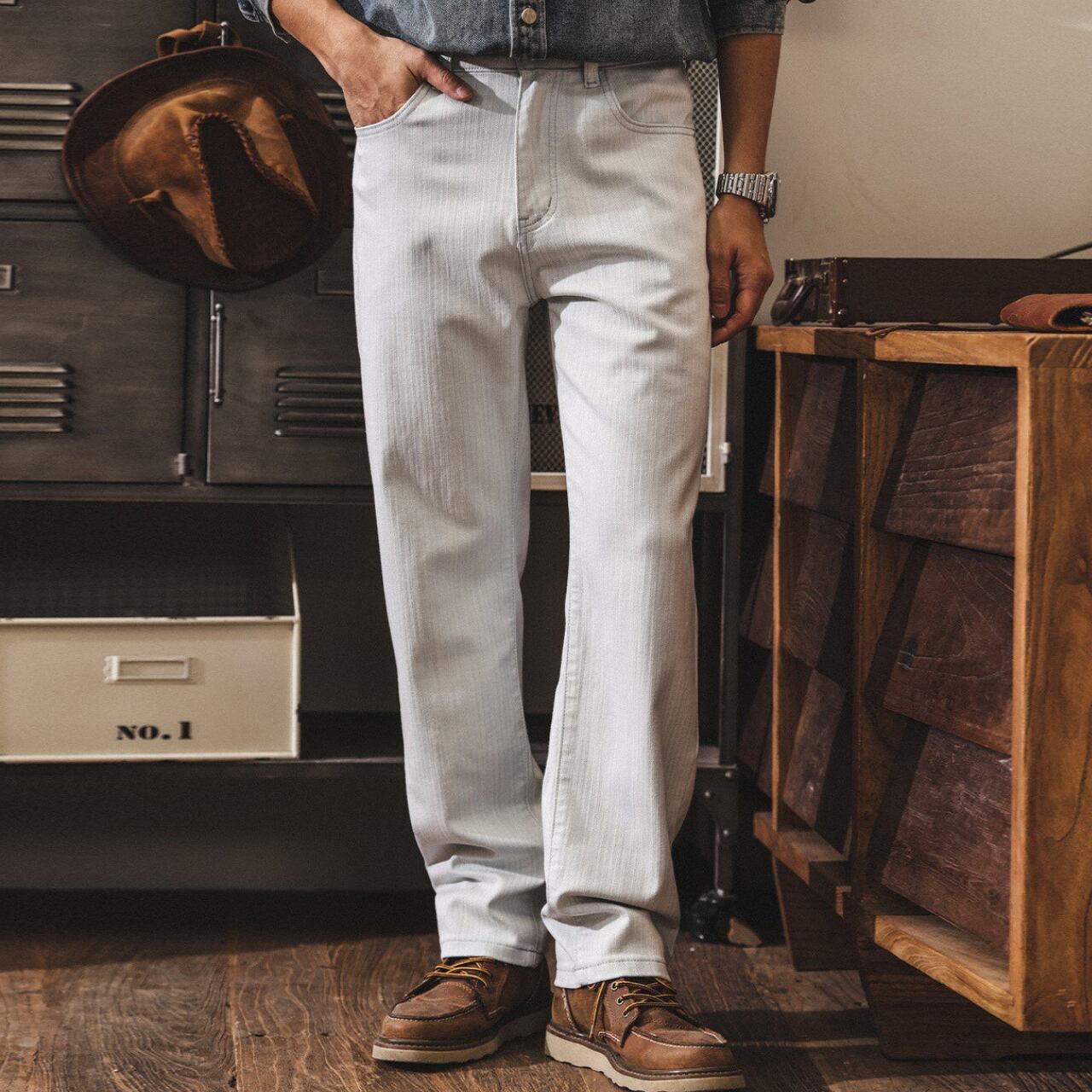 Stripe retro straight denim ( 3color )