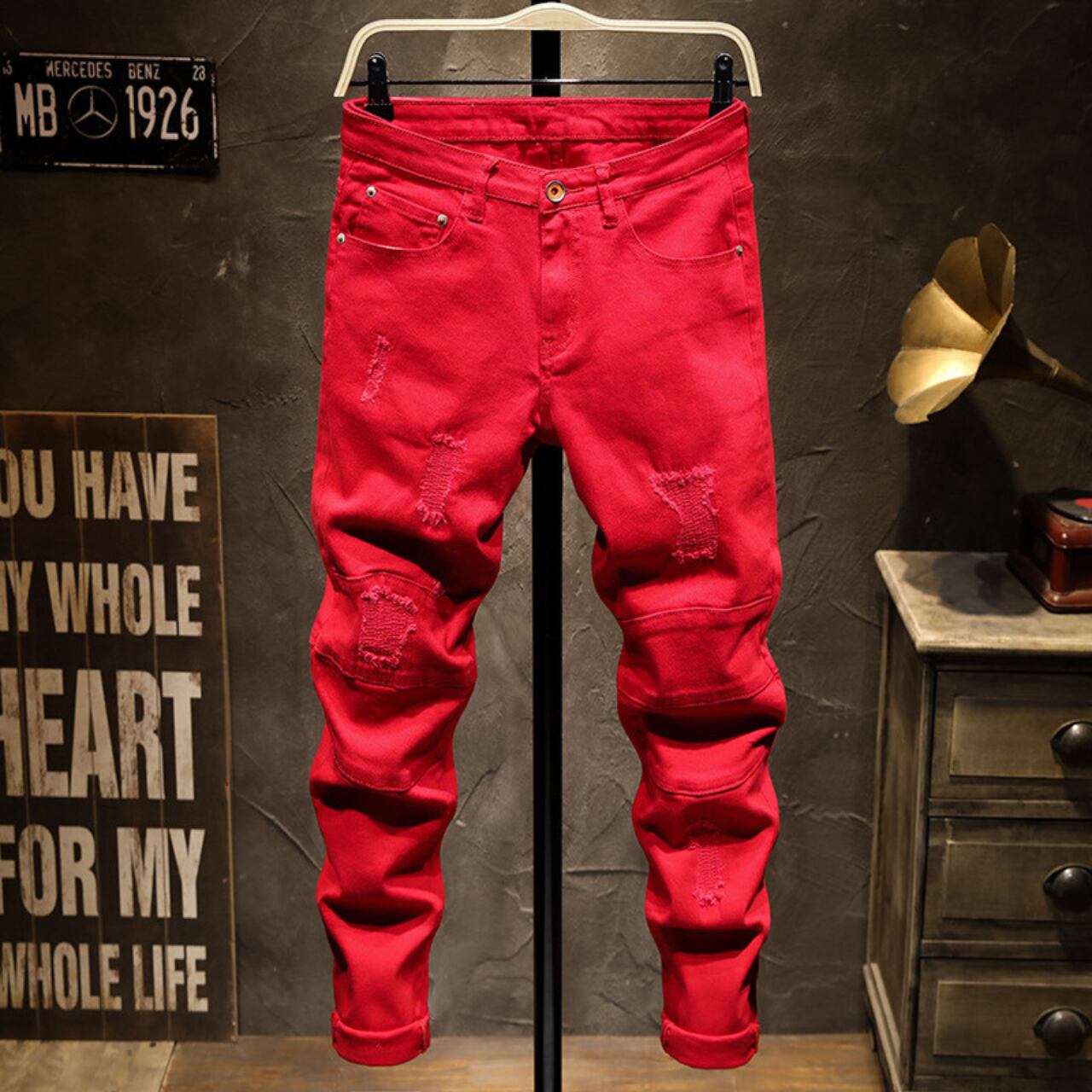 Solid color vintage damage denim ( 3color )