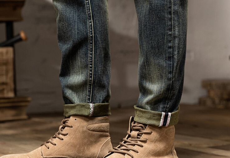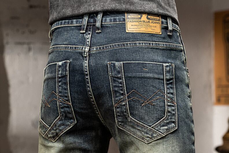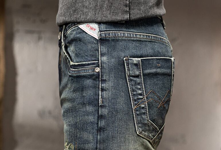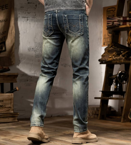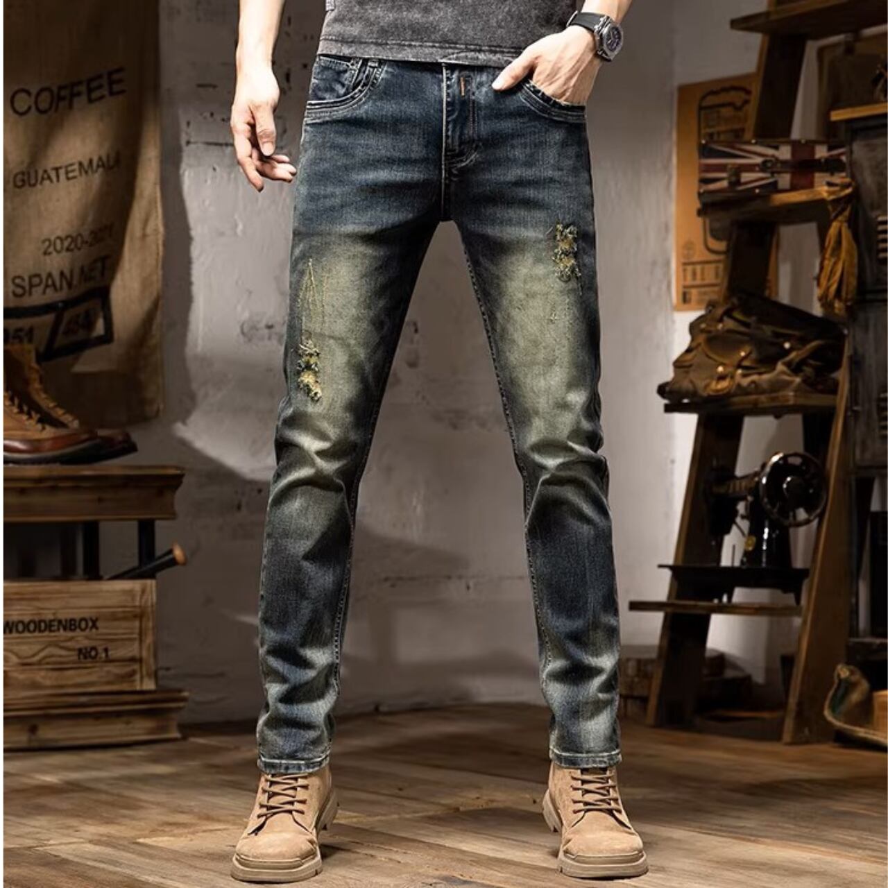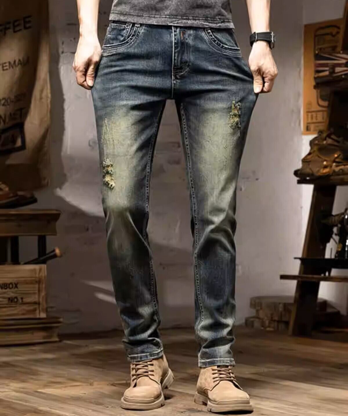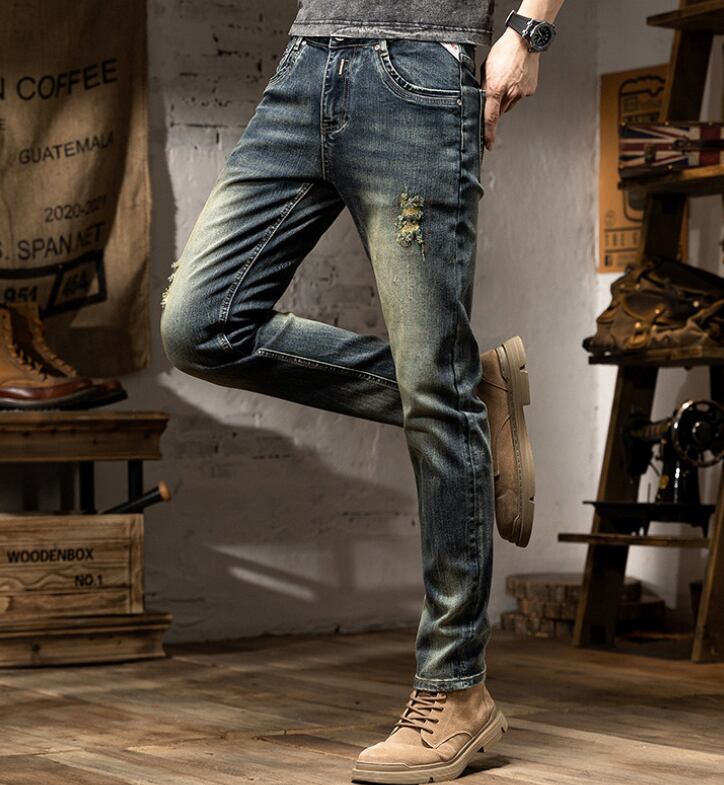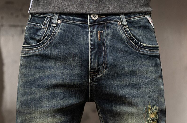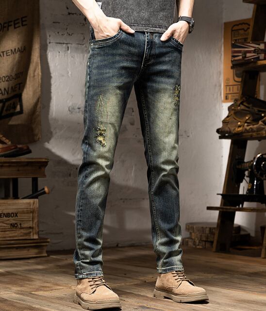 Vintage wash slim fit damage denim