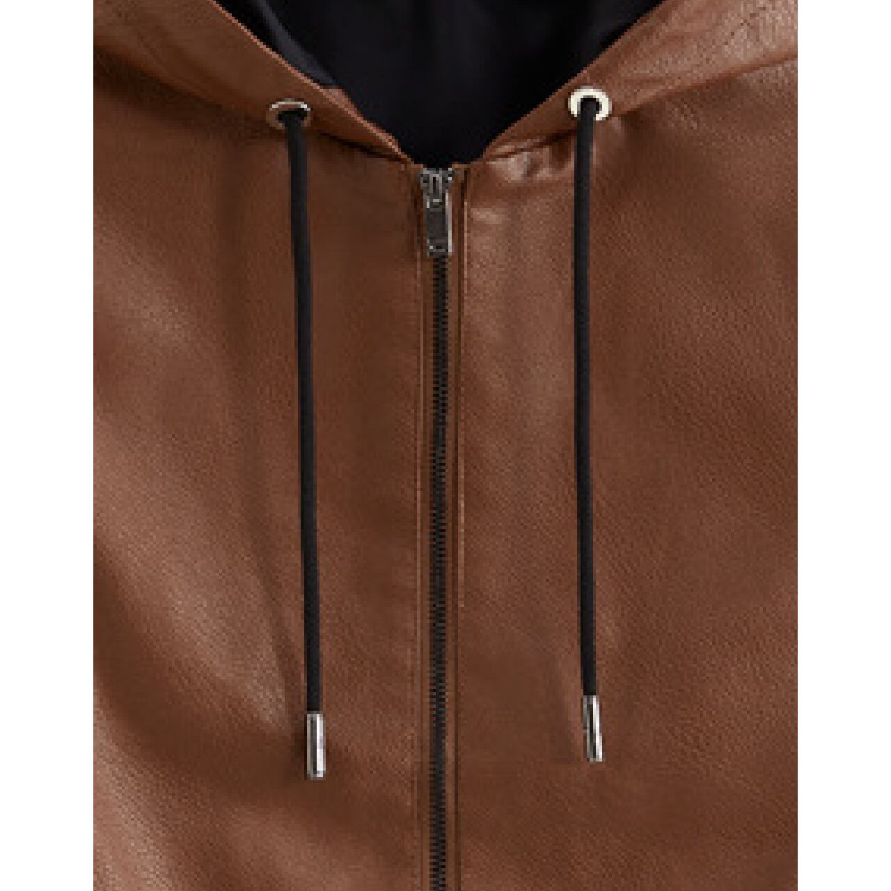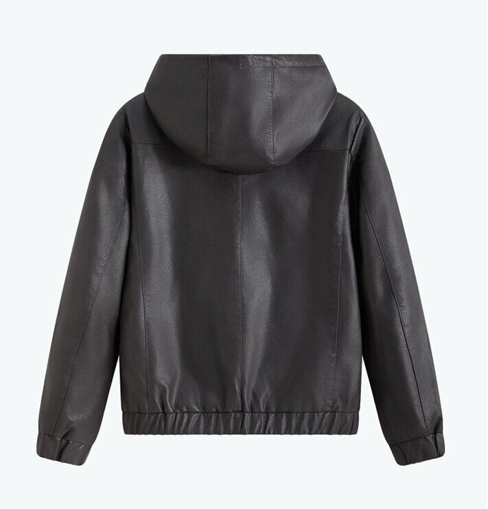 Single zip vintage pu hood leather jacket ( 3color )