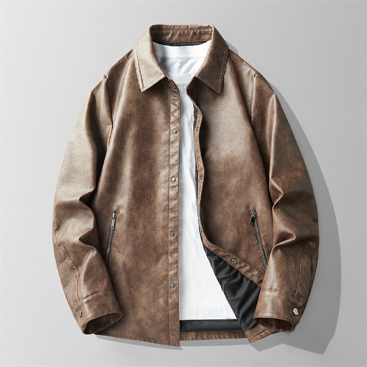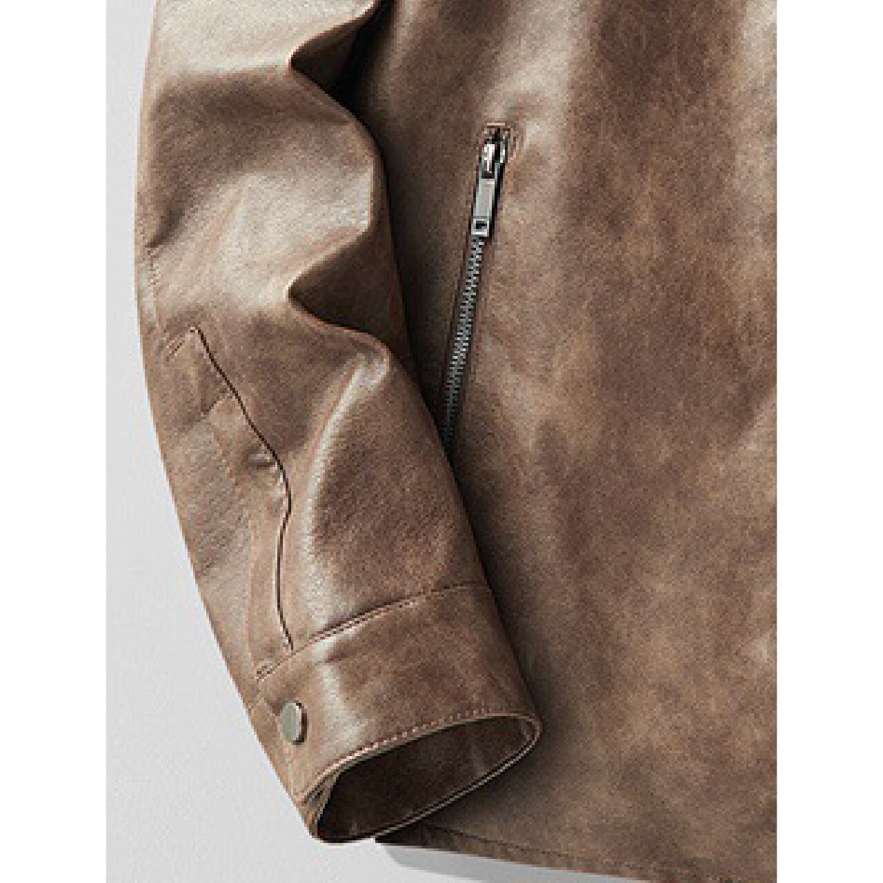 Lapel collar vintage single rider's pu leather jacket ( 3color )