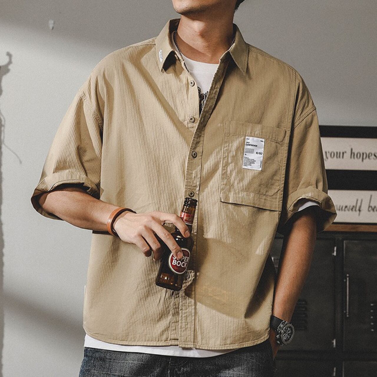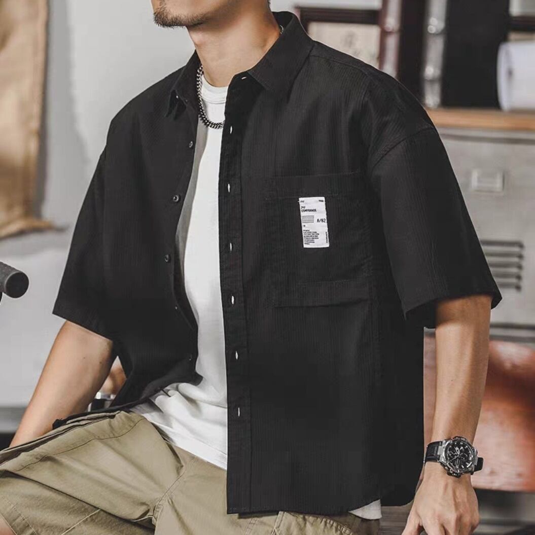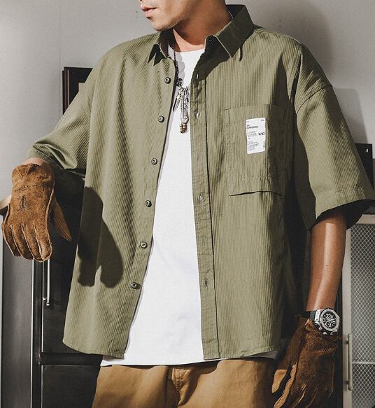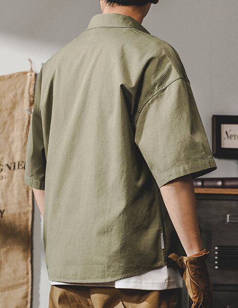 Single pocket rib texture vintage shirt ( 3color )