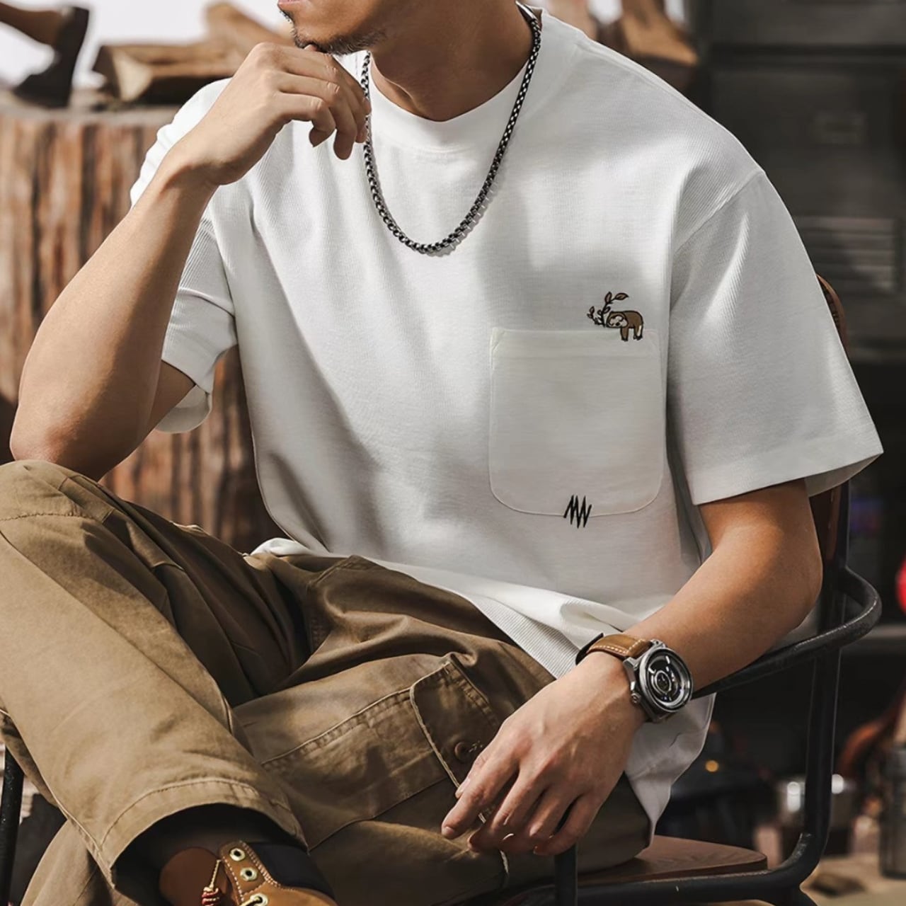 Animal stitch retro waffle t shirt ( 2color )