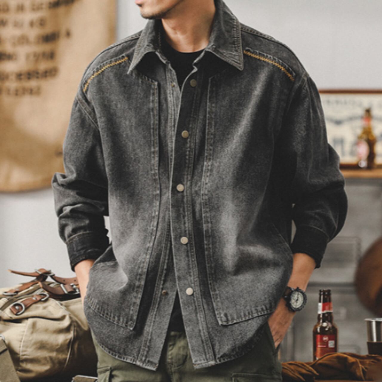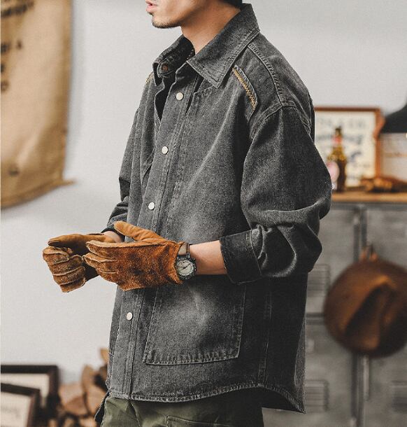 Vintage wash design denim shirt