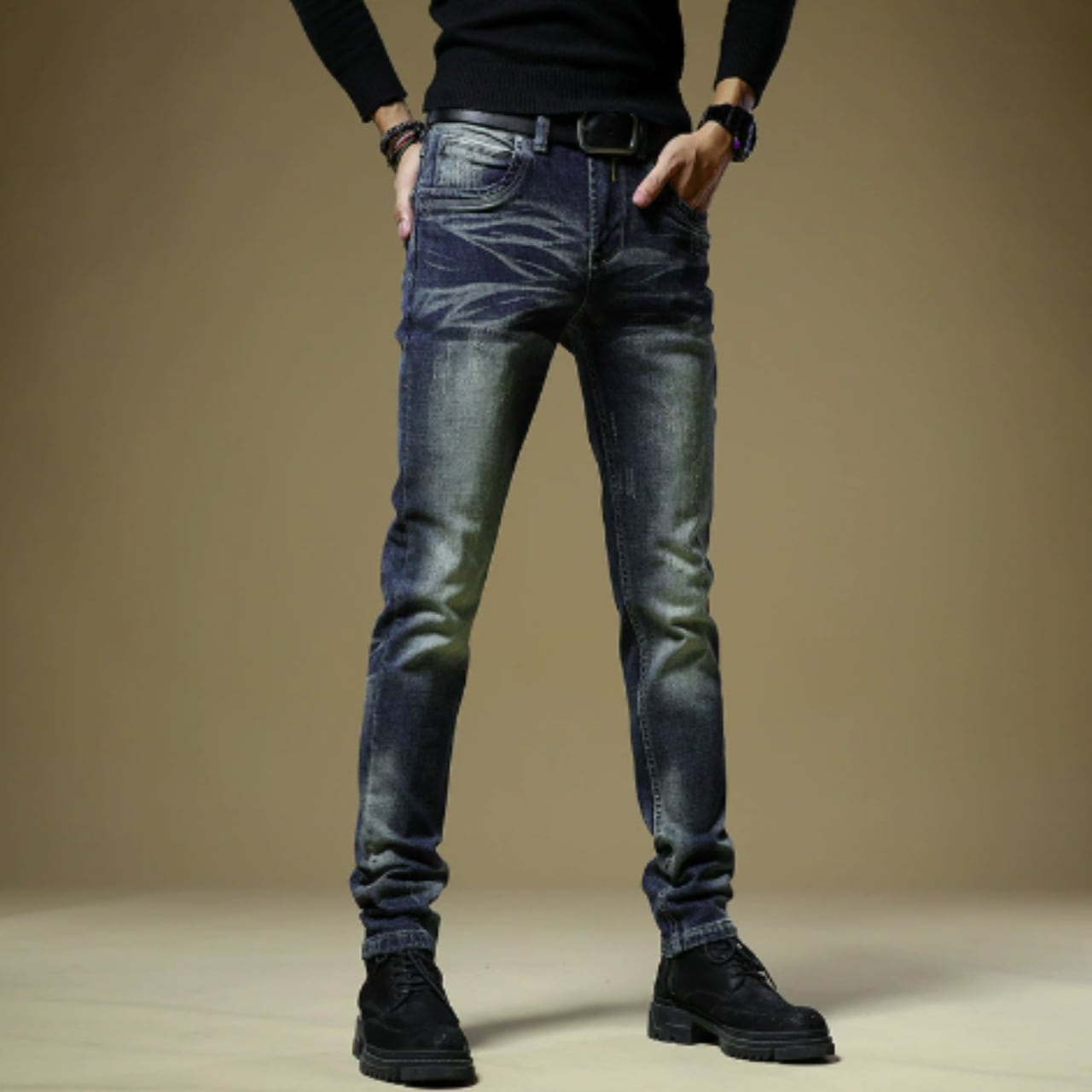 Skinny fit straight denim