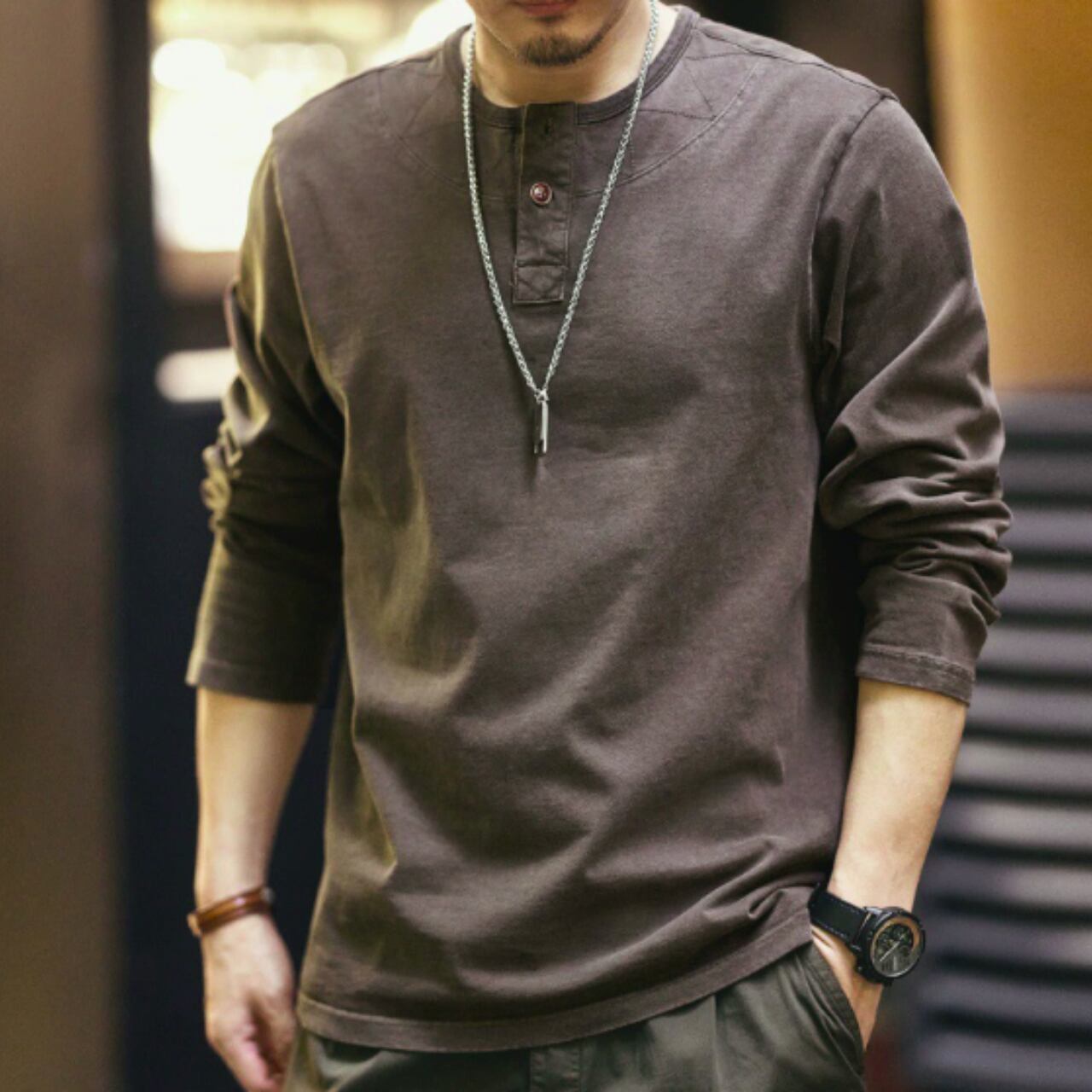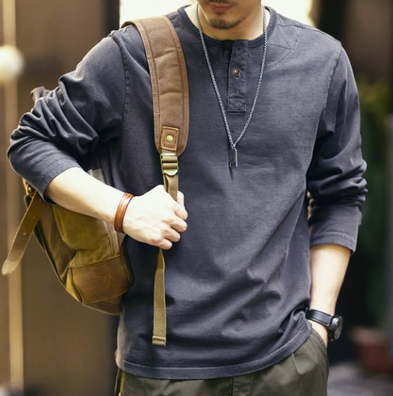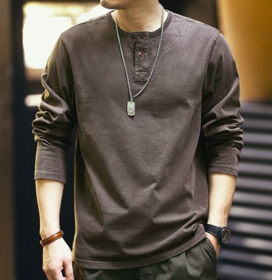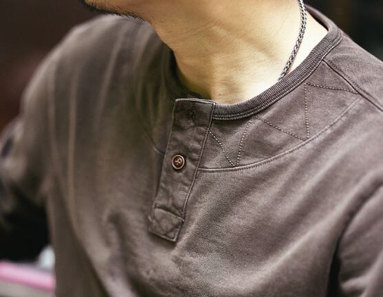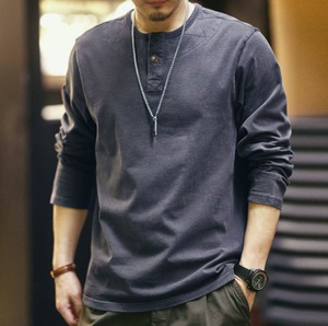 Henley neck vintage long t shirt ( 2color )