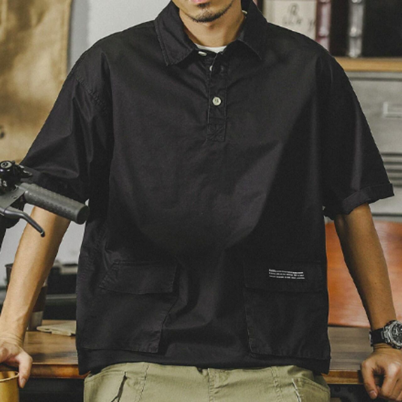 Polo collar front pocket shirt