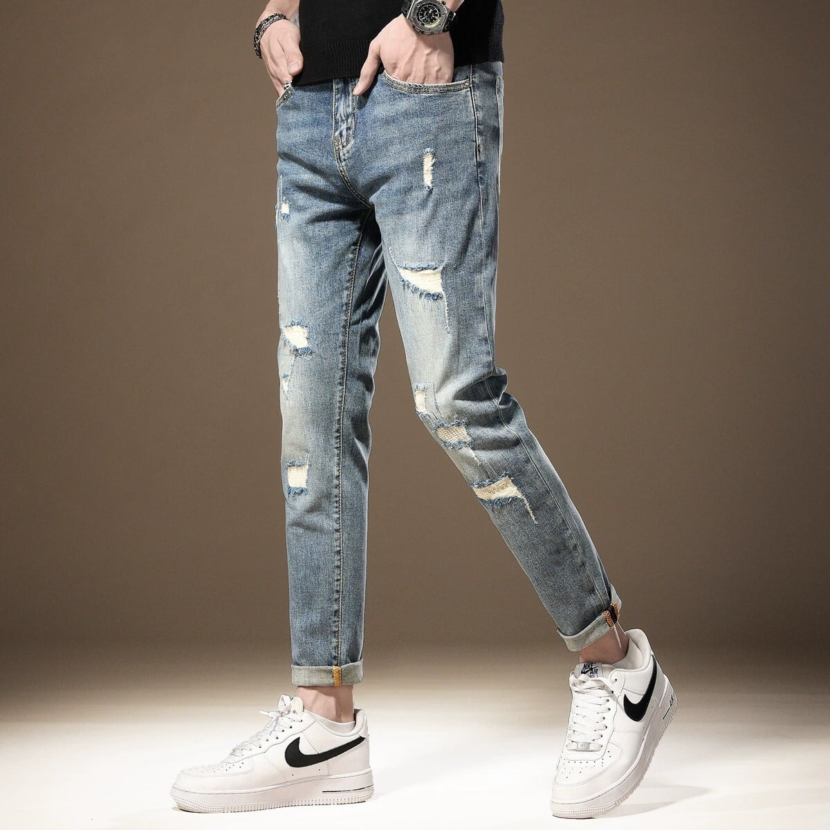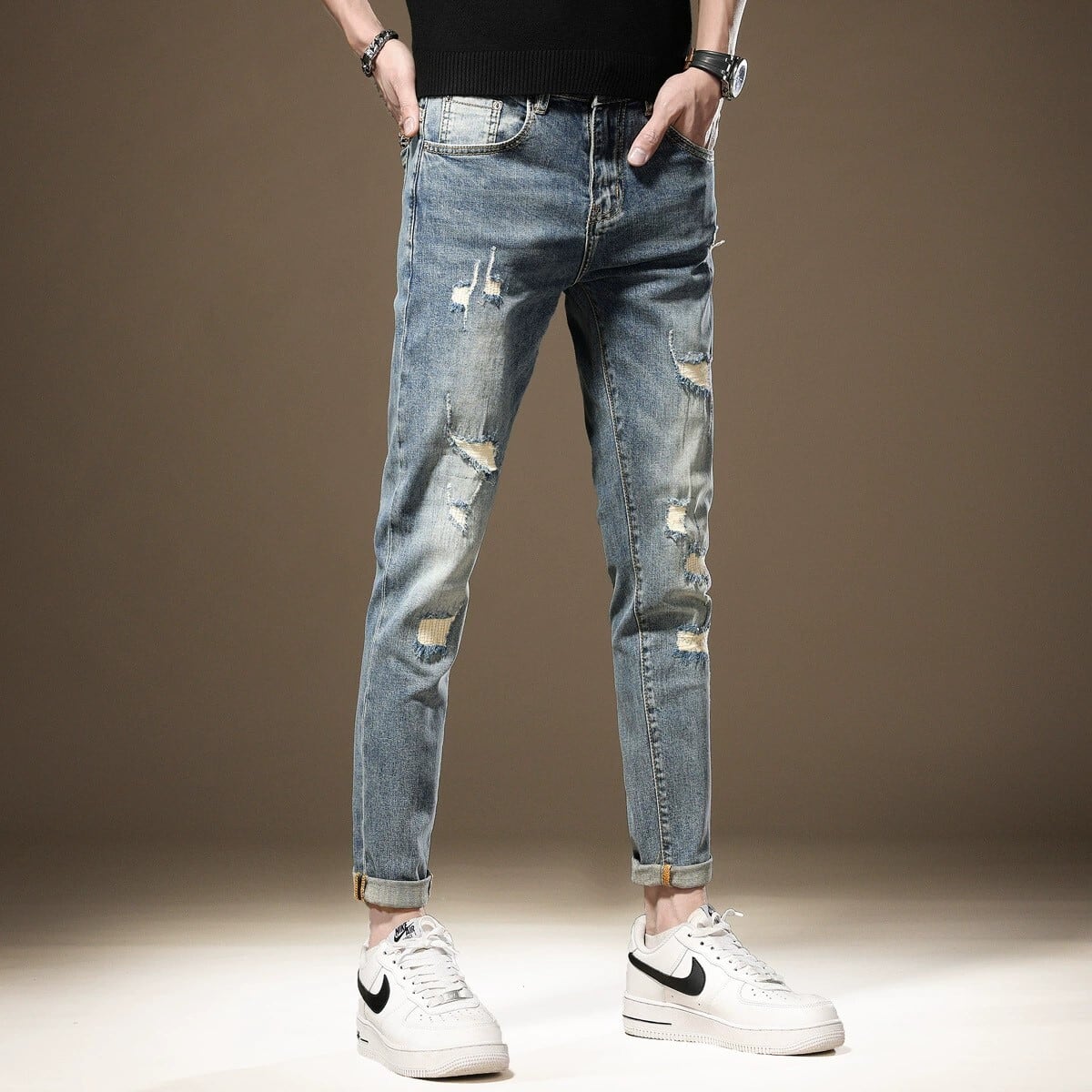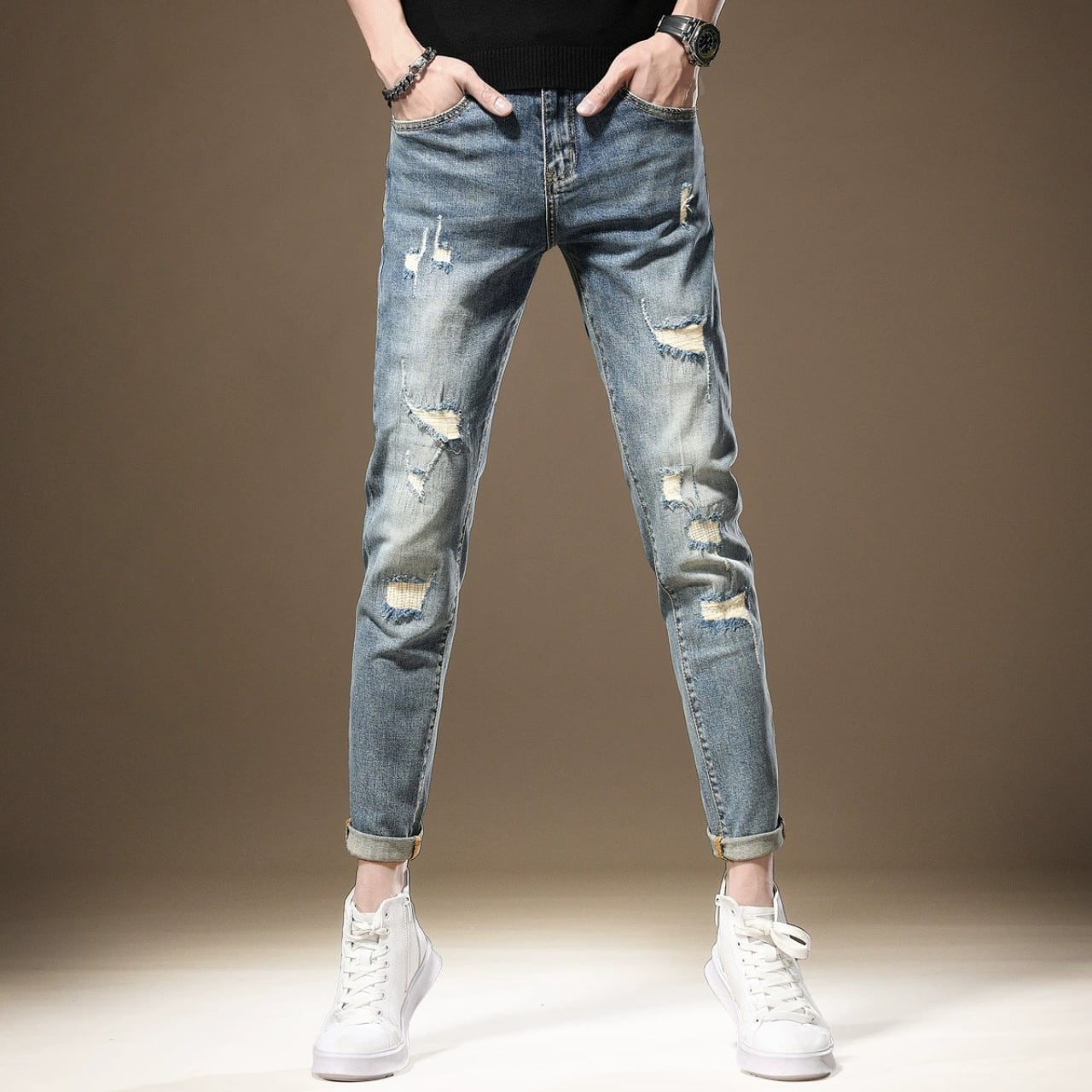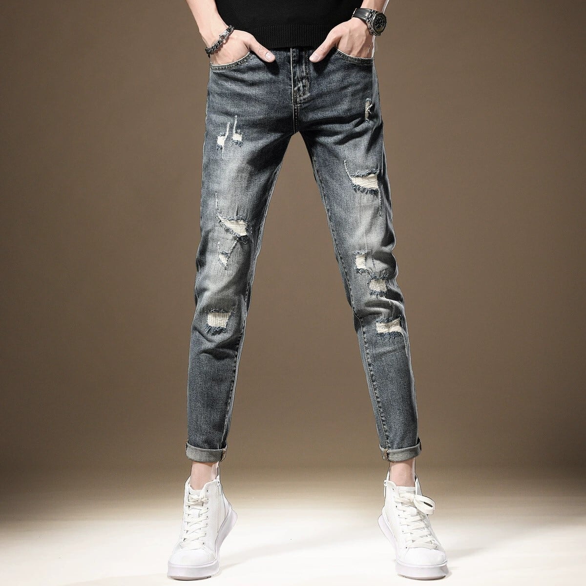 Cropped vintage stretch denim ( 2color )